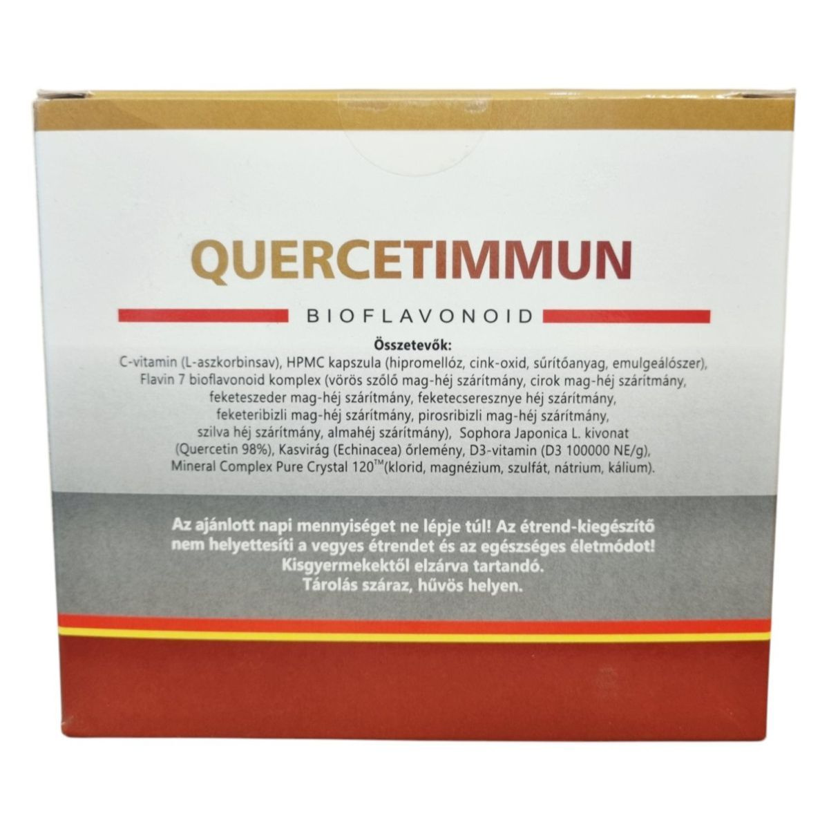 A DOUBLE IMMUN QUERCETIN kapszula egy komplex étrend-kiegészítő, amely quercetint, echinaceát, valamint C- és D-vitamint tartalmaz. A termék célja, hogy támogassa az immunrendszer normál működését, és hozzájáruljon az egészséges csontozat és fogazat fenntartásához. A kapszulák polifenol és flavonoid tartalma révén antioxidáns hatással is bírhatnak. A termék összetevői között megtalálható a Flavin 7 bioflavonoid komplex, valamint a Mineral Complex Pure Crystal 120™, amelyek további ásványi anyagokat biztosítanak.