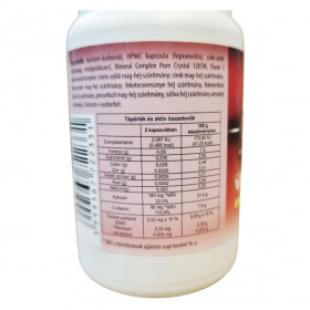 Kalcium-karbonát, HPMC kapszula (hipromellóz, cink-oxid, színezőanyag, emulgeálószer), Mineral Complex Pure Crystal 120TM, Flavin 7 Prémium komplex (vörös szőlő mag-héj szárítmány; cirok mag-héj szárítmány; fekete ribizli mag-héj szárítmány; fekete cseresznye héj szárítmány, fekete ribizli héj szárítmány, pirospaprika mag-héj szárítmány, szilva héj szárítmány, almahéj szárítmány), kalcium-l-aszkorbát.