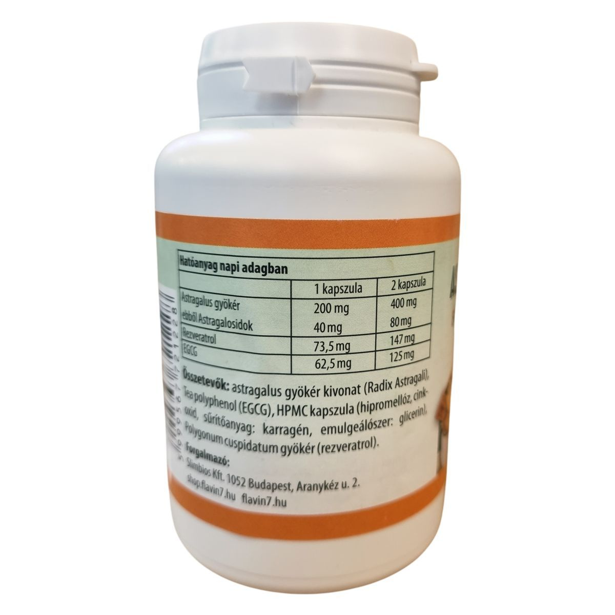 Az étrend-kiegészítő kapszula astragalus gyökér, EGCG és rezveratrol hatóanyagokat tartalmazhat, amelyek hozzájárulhatnak a szervezet antioxidáns védelméhez és az immunrendszer támogatásához.