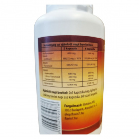 4 kapszula: Bioflavonoid 1600 mg, ebből polifenol 1333,44 mg ± 10 %, quercetin 600 mg, citrus flavonoid 500 mg, hesperidin 100 mg, rezveratrol 0,128 mg.