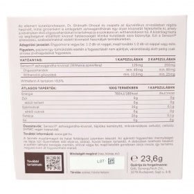 Sensoril® ashwagandha-kivonat, tápióka keményítő, mikrokristályos cellulóz, cellulóz (HPMC vegán kapszula)