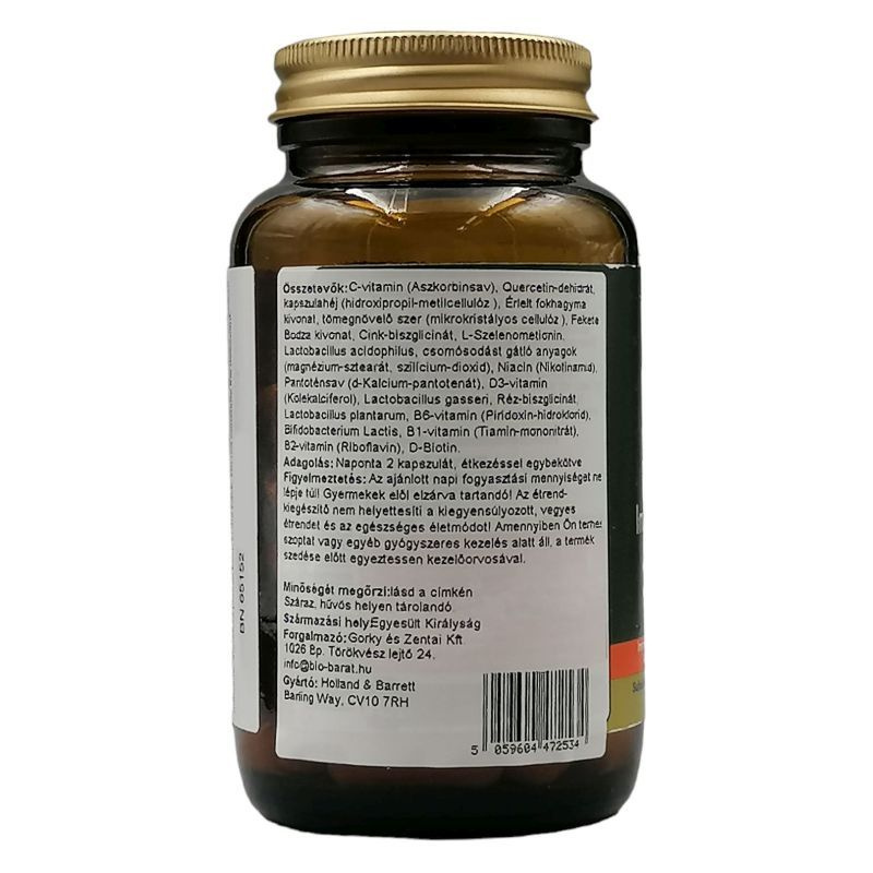 Ez a kapszula hatékonyan támogatja az immunrendszert, gazdag C- és D-vitaminban, valamint ásványi anyagokban, mint a cink és a szelén. Természetes összetevői, például fekete bodza és fokhagyma, hozzájárulnak a bélflóra egészségéhez is.