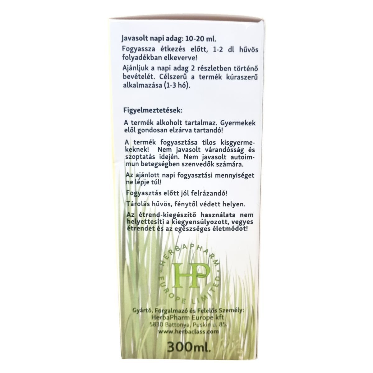 Napi 10-20 ml, étkezés előtt 1-2 dl hűvös folyadékban elkeverve, célszerű két részletben fogyasztani. A termék kúraszerű alkalmazását javasolt 1-3 hónapig folytatni.