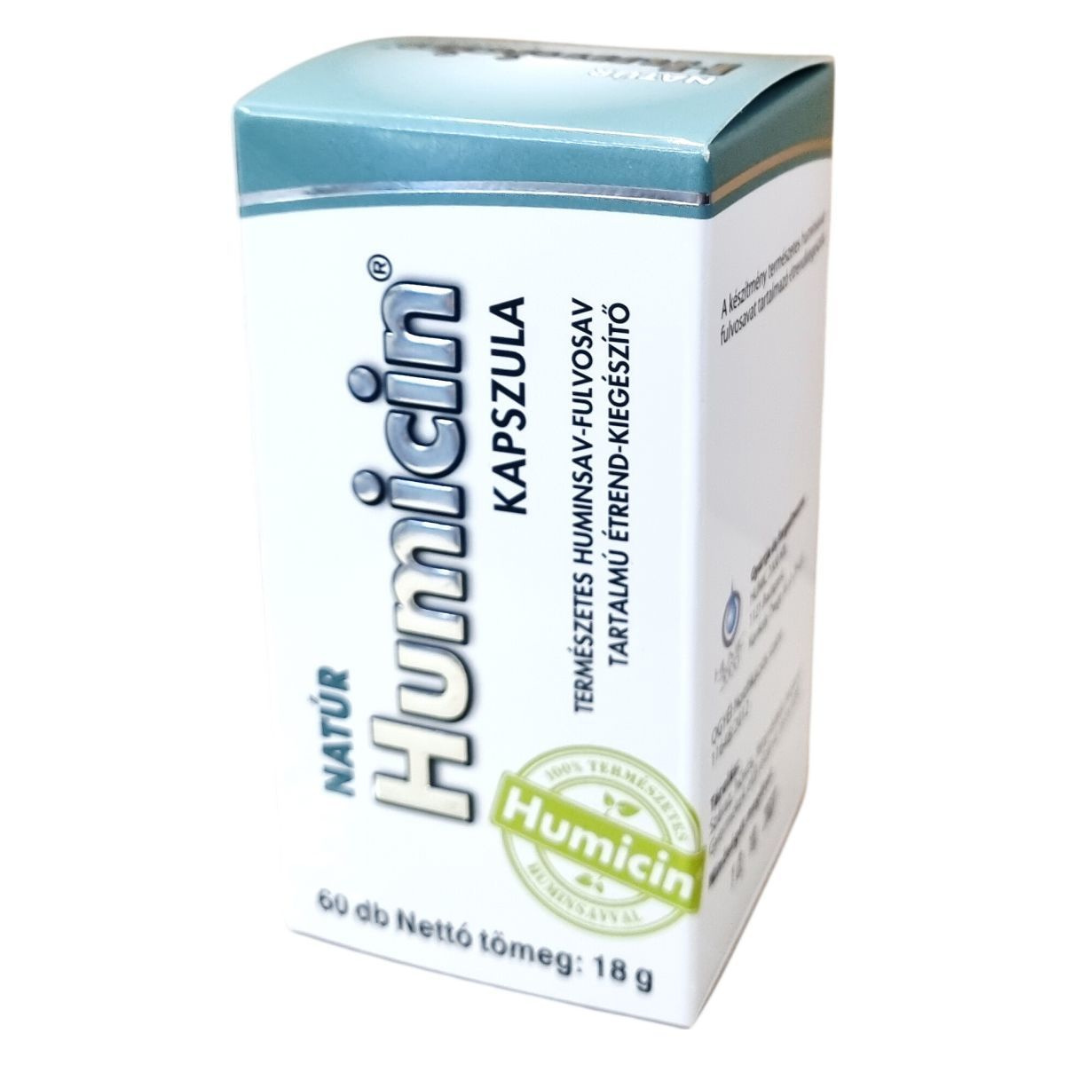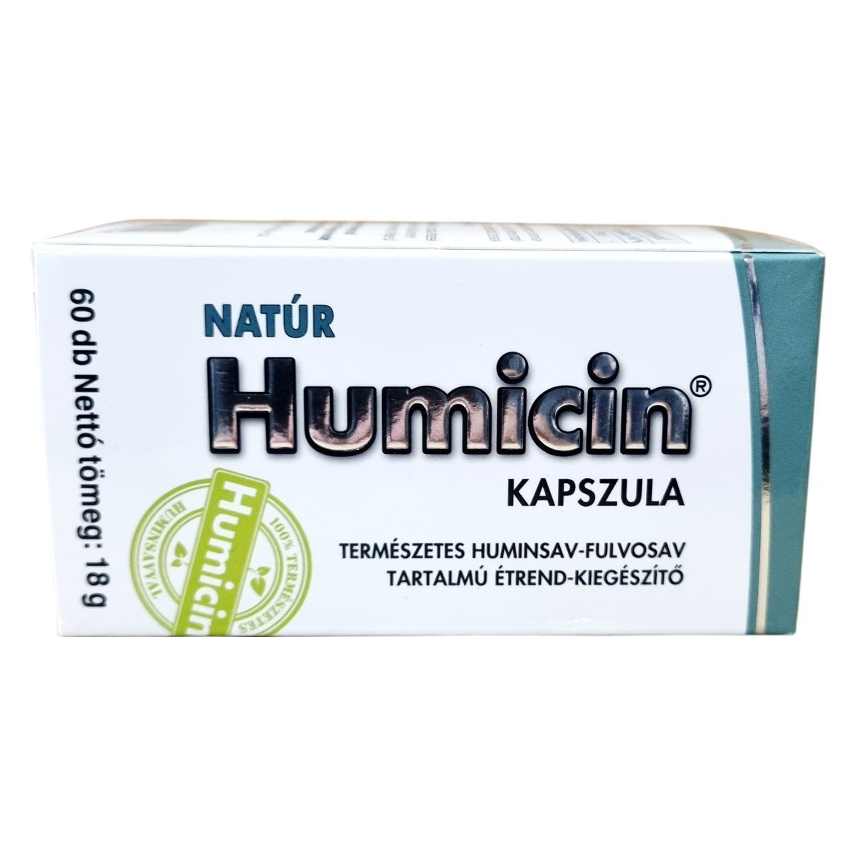 A NATÚR Humicin® kapszula egy természetes huminsav-fulvosav tartalmú étrend-kiegészítő, amely 60 db kapszulát tartalmaz, összesen 18 g nettó tömegben. A termék Humicin porból áll, amely huminsav-fulvosavat tartalmaz, továbbá kapszula alapanyaga hydroxi-propil-cellulóz és csomósodásgátló anyagként zsírsavak magnéziumsóit. A napi ajánlott adag 2x1 kapszula, amelyet étkezések előtt, bőséges folyadékkal célszerű bevenni. A termék nem helyettesíti a változatos és kiegyensúlyozott étrendet, illetve az egészséges életmódot. Tárolása száraz, hűvös és fényvédett helyen ajánlott, gyermekektől elzárva. A terméket a HUMIC 2000 Kft. gyártja és forgalmazza Budapesten.