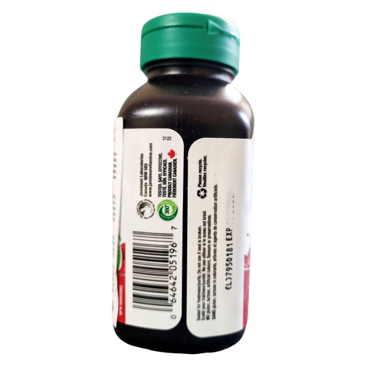 A Jamieson C- és D3-vitamin szopogató tabletta cseresznye ízesítéssel készült, és édesítőszerrel van ellátva. A termék 75 tablettát tartalmaz, és a Jamieson Laboratories minőségi elvárásainak megfelelően készült. A C-vitamin hozzájárulhat az erek normál állapotának fenntartásához, a kollagén- és porcképződéshez, valamint a sejtek oxidatív stresszel szembeni védelméhez. A D-vitamin támogathatja a kalcium és foszfor normál felszívódását, valamint az egészséges csontozat és fogazat fenntartását. A termék nem tartalmaz glutént, laktózt, mesterséges színezékeket, ízesítőket és tartósítószereket.