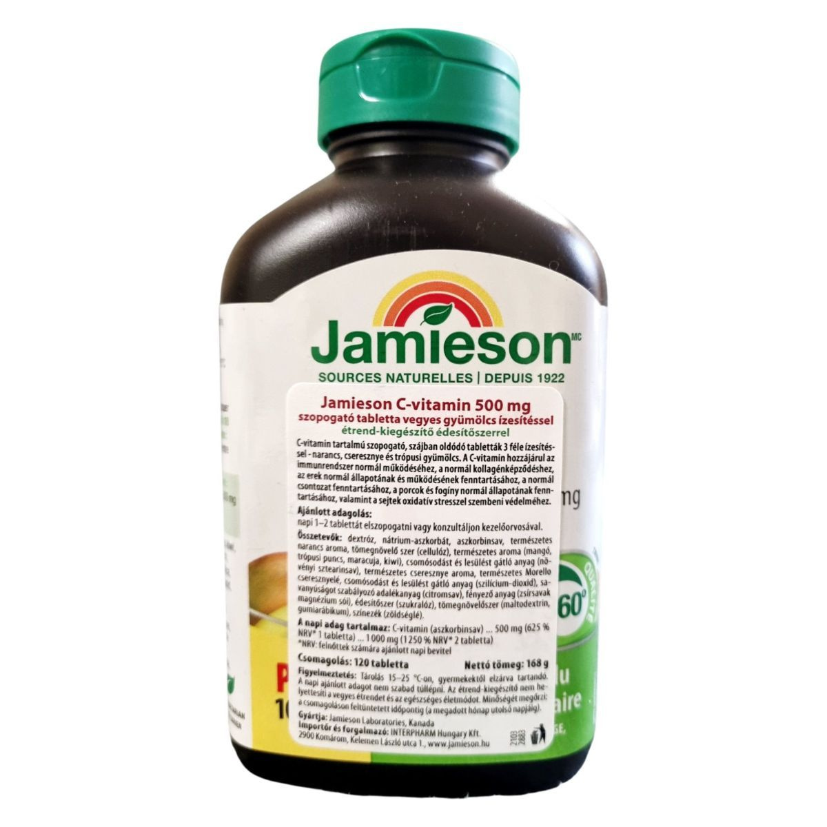A Jamieson C-vitamin 500 mg szopogató tabletta egy étrend-kiegészítő, amely különböző gyümölcsízekben kapható, mint narancs, cseresznye és trópusi gyümölcs. A termék célja, hogy támogassa az immunrendszer normál működését, a normál kollagénképződést, valamint a sejtek oxidatív stresszel szembeni védelmét. A tabletták vegetáriánus étrendbe illeszthetők, és mentesek gluténtől, laktóztól, mesterséges színezékektől és tartósítószerektől. A termék 120 tablettát tartalmaz, és a Jamieson Laboratories gyártja Kanadában, az INTERPHARM Hungary Kft. forgalmazza Magyarországon.
