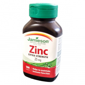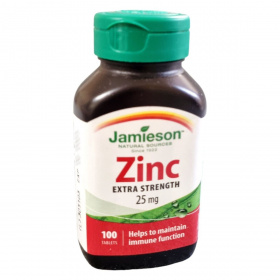 A Jamieson Zinc étrend-kiegészítő Kanadában gyártott termék, amely 100 tablettát tartalmaz. A cink hozzájárulhat az immunrendszer normál működéséhez, a sejtek oxidatív stresszel szembeni védelméhez, valamint a normál DNS-szintézishez és termékenységhez. Támogathatja az egészséges haj, köröm és bőr fenntartását. A termék nem tartalmaz cukrot, keményítőt, glutént, laktózt, mesterséges színezékeket, ízesítőket vagy tartósítószereket, így vegetáriánus étrendbe is beilleszthető. Fontos, hogy a terméket az ajánlott mennyiségben fogyassza, és ne lépje túl a napi adagot. A cink használata rézhiányt okozhat, ezért javasolt a termék szedése előtt konzultálni kezelőorvosával.
