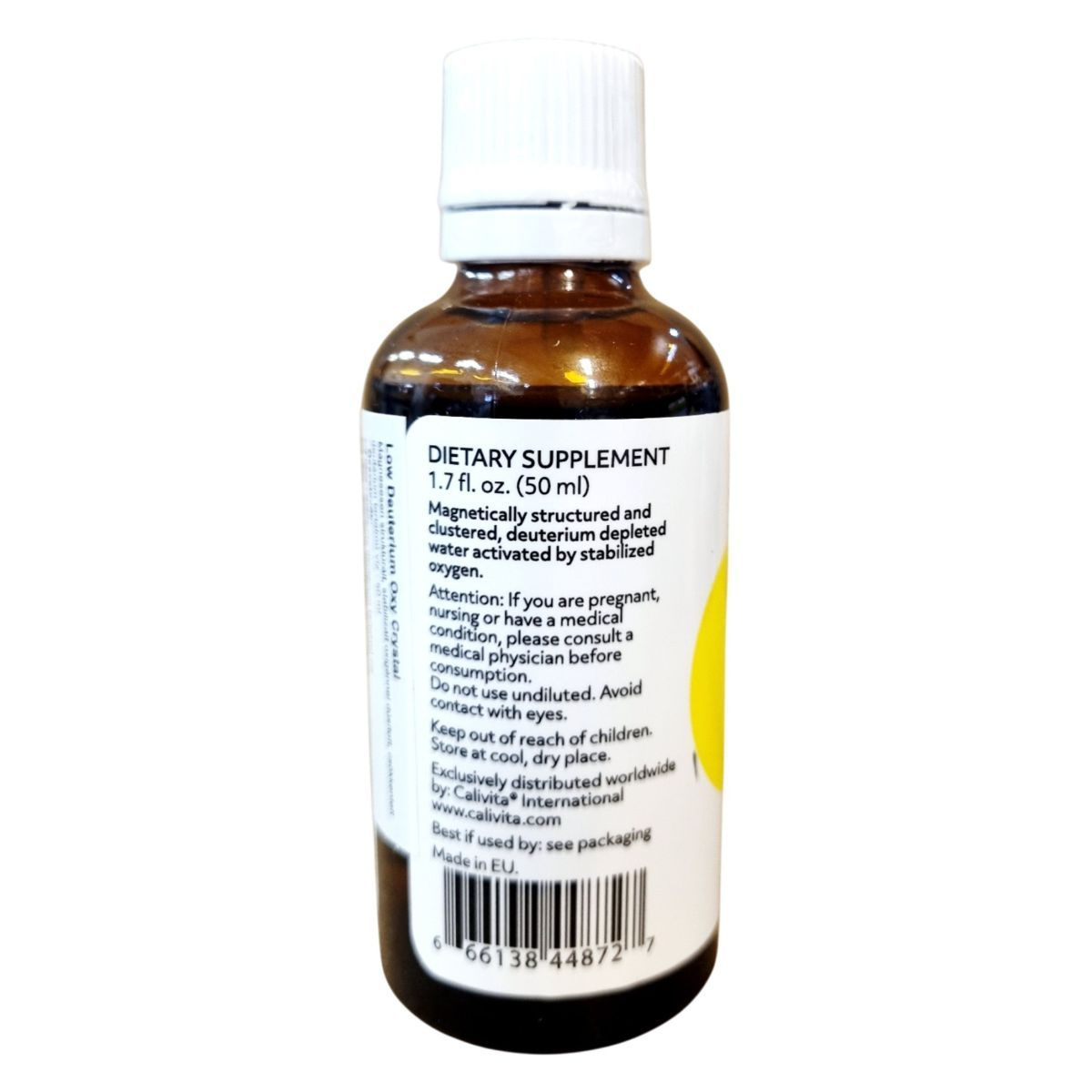 A Calivita Low Deuterium Oxy Crystal folyadék egy speciális, stabilizált oxigénnel dúsított és deutériumcsökkentett vízalapú étrend-kiegészítő. A készítmény célja, hogy kényelmesen adagolható formában támogassa a szervezet oxigénellátását. Használata egyszerű: vízhez keverve fogyasztható, így biztosítva a mindennapi bevitelt. A termék az EU-ban készült, és kizárólag ellenőrzött forrásból származó összetevőket tartalmaz. Biztonságos tárolási és használati útmutatóval rendelkezik, hogy hosszú távon is megfelelő kiegészítője lehessen az egészséges életmódnak.