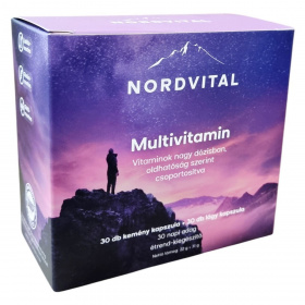 A Nordvital Multivitamin egy kétféle kapszulatípusba csoportosított étrend-kiegészítő, amely nagy dózisú vitaminokat tartalmaz oldhatóság szerint elkülönítve. A zsírban oldódó vitaminok (A, D, E, K) olajos lágy kapszulában, Omega-3 halolajban oldva találhatók, míg a vízben oldódó vitaminok, ásványi anyagok és nyomelemek kemény kapszulában helyezkednek el. A készítmény jól hasznosuló, szerves kötésű hatóanyagformákat tartalmaz, melyek laboratóriumban bevizsgáltak és GMP minősítéssel rendelkező gyártóüzemben készülnek. A termék használata napi 1 kemény és 1 lágy kapszula bevételét jelenti étkezés után. A multivitamin laktóz-, glutén- és GMO-mentes, így különböző diétákhoz is alkalmas táplálékkiegészítő lehet. Az étrend-kiegészítő nem helyettesíti a változatos és kiegyensúlyozott étrendet, és fogyasztása során az ajánlott adagot nem szabad túllépni. Tárolása száraz, napfénytől védett helyen, szobahőmérsékleten, gyermekek elől elzárva javasolt.