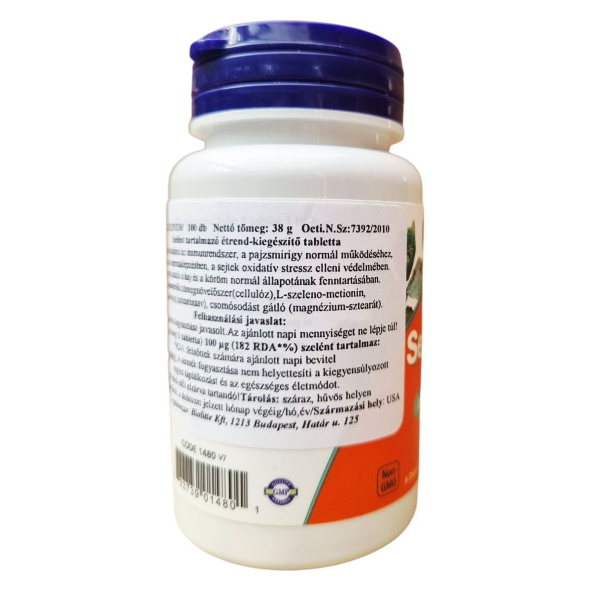A NOW Selenium egy étrend-kiegészítő tabletta, amely 100 mcg szelént tartalmaz, hozzájárulhat az immunrendszer és a pajzsmirigy normál működéséhez, valamint a sejtek oxidatív stressz elleni védelméhez. A termék vegetáriánus és vegán étrendbe is beilleszthető, és élesztőmentes. A tabletták nem tartalmaznak allergéneket, mint például búza, glutén, szója, tej, tojás, hal, kagyló, diófélék vagy szezámmag. A terméket a Bioline Kft forgalmazza, és GMP minősítéssel rendelkezik.