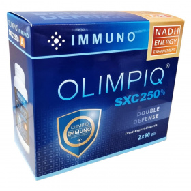 IMMUNO. NADH ENERGY ENHANCMENT. DOUBLE DEFENSE. OLIMPIQ IMMUNO protection complex. Nettó tömeg A: 56,4 g (90 x 627 mg). Nettó tömeg B: 55,2 g (90 x 613 mg). 2x90 pcs.