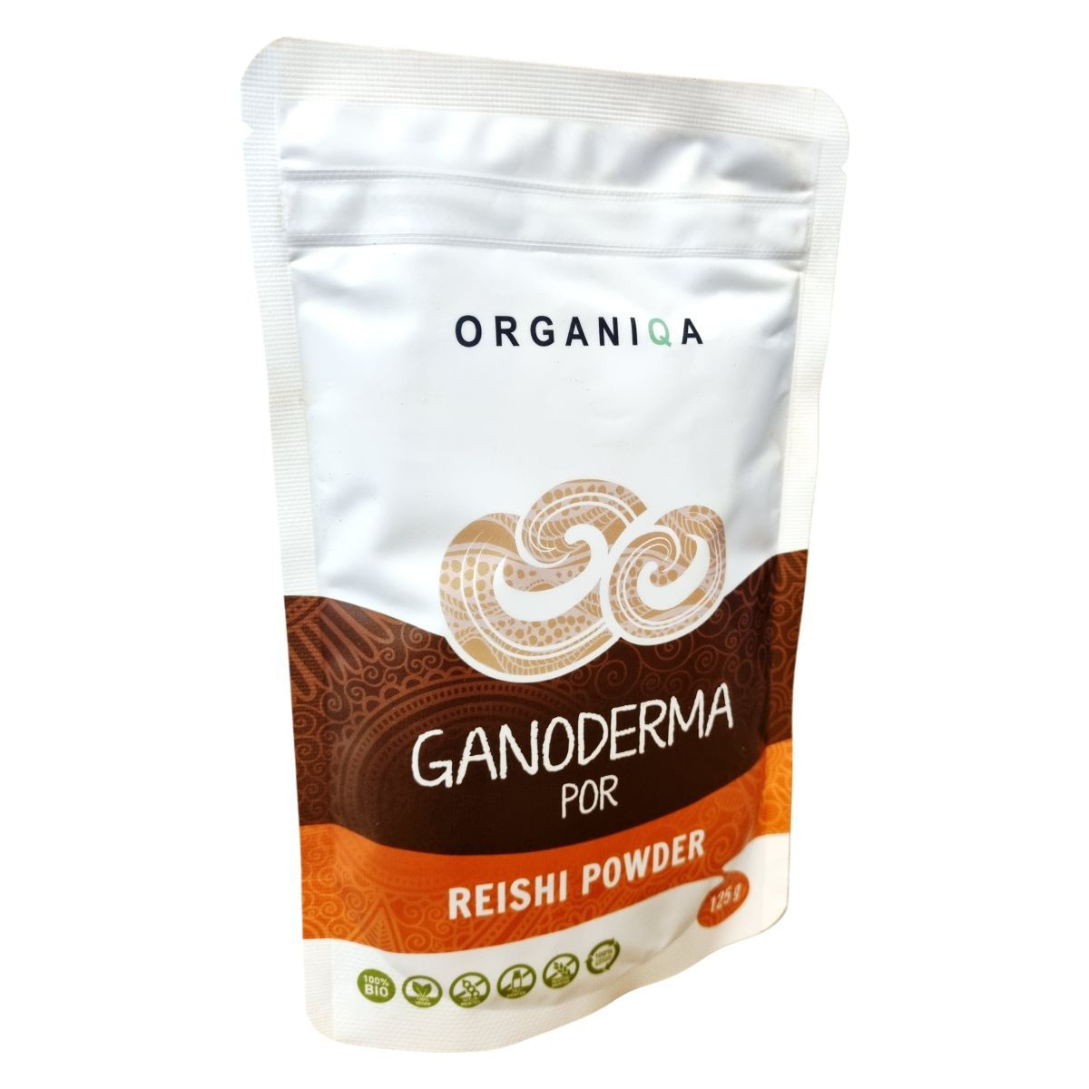A Ganoderma por, más néven pecsétviaszgomba, Ázsiában őshonos, meleg, nedves helyeken terem. A termék 100% bio ganoderma gombaport tartalmaz, amelyet ellenőrzött ökológiai gazdálkodásból származó alapanyagokból készítenek. A tasak 100% újrahasznosítható, így környezetbarát választás. A terméket a Biokontroll Hungária Nonprofit Kft. ellenőrzi, és a származási helye Kína. A termék forgalmazója az Organiqa Team Kft., amelynek székhelye Budapest, Tállya utca 30.