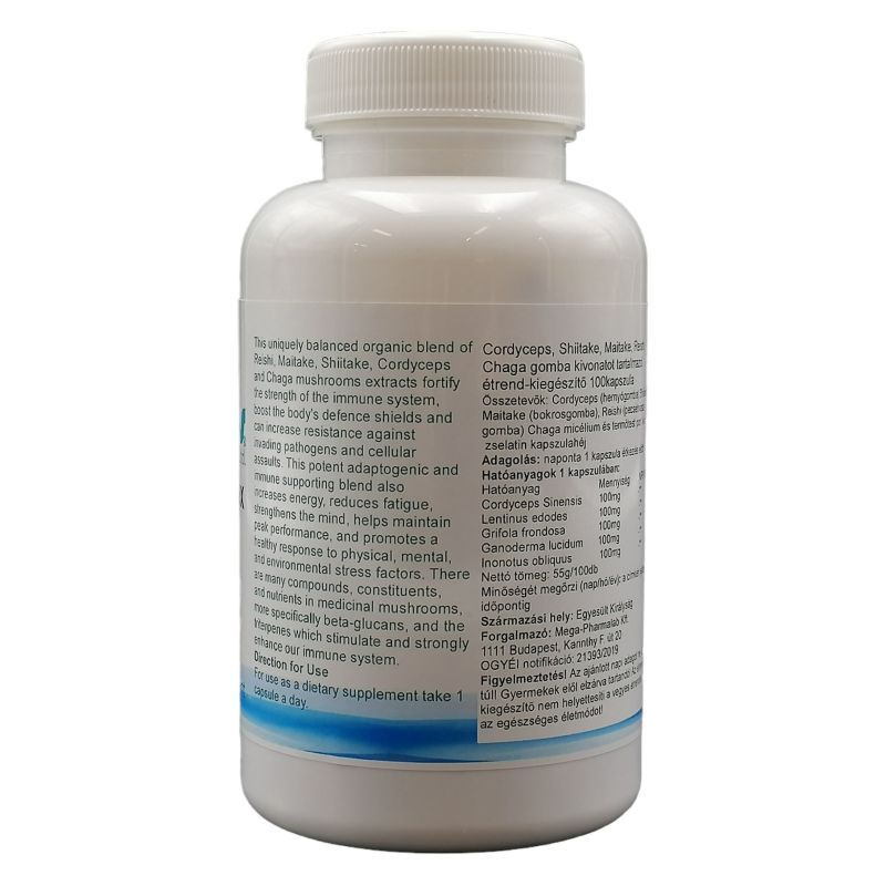 A gyógygomba komplex 5 féle gyógyhatású gomba erejével rendelkezik. A reishi, a maitake, a shiitake, a cordyceps és a chaga gomba kivonatainak egyedülállóan kiegyensúlyozott szerves keveréke.