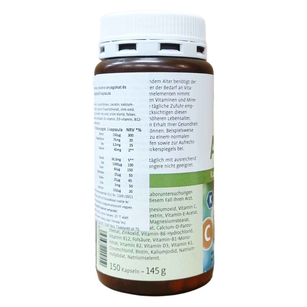 A kapszula tartalmazza mindazokat a vitaminokat, ásványi anyagokat és nyomelemeket, melyek egy időskori szervezetnek szüksége van.