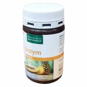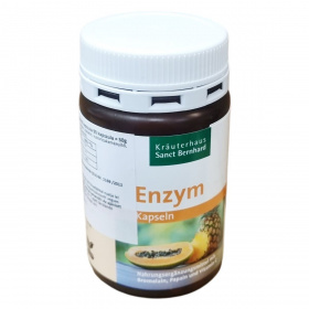 A Kräuterhaus Sanct Bernhard Enzym kapszula egy ananászt és papayát tartalmazó étrend-kiegészítő, mely bromelain, papain és C-vitamin kombinációját kínálja. A készítmény Németországban készül, és összetevői között megtalálhatók a természetes gyümölcsporok mellett növényi alapú kapszulahéj és csomósodásgátló anyagok. A termék teljes tömege 50 gramm, 90 kapszulát tartalmaz, ami napi 3 kapszula fogyasztását javasolja főétkezések előtt. A készítményt szigorúan szobahőmérséklet alatt, száraz és fénytől védett helyen kell tárolni. A termék szulfitokat tartalmaz, ezért figyelmet igényelhet allergiás egyéneknél. A forgalmazás Magyarországon az ODP Vital Kft. által történik.