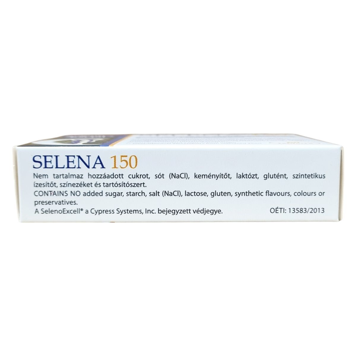 A SELENA 150 egy étrend-kiegészítő tabletta, melynek egy tablettája 150 mikrogramm szelént tartalmaz, szeléndúsított élesztőből származó szerves formában (SelenoExcell®). A termék nem tartalmaz hozzáadott cukrot, sót, keményítőt, laktózt, glutént, szintetikus ízesítőt, színezéket és tartósítószert. A szelén hozzájárulhat az oxidatív stresszel szembeni védelemhez, az immunrendszer és a pajzsmirigy normál működéséhez, a haj és a köröm normál állapotának fenntartásához, valamint részt vehet a normál spermaképzésben. A tabletták száraz, hűvös helyen tárolandók, gyermekektől elzárva. A terméket naponta egy tabletta bevétele javasolt.