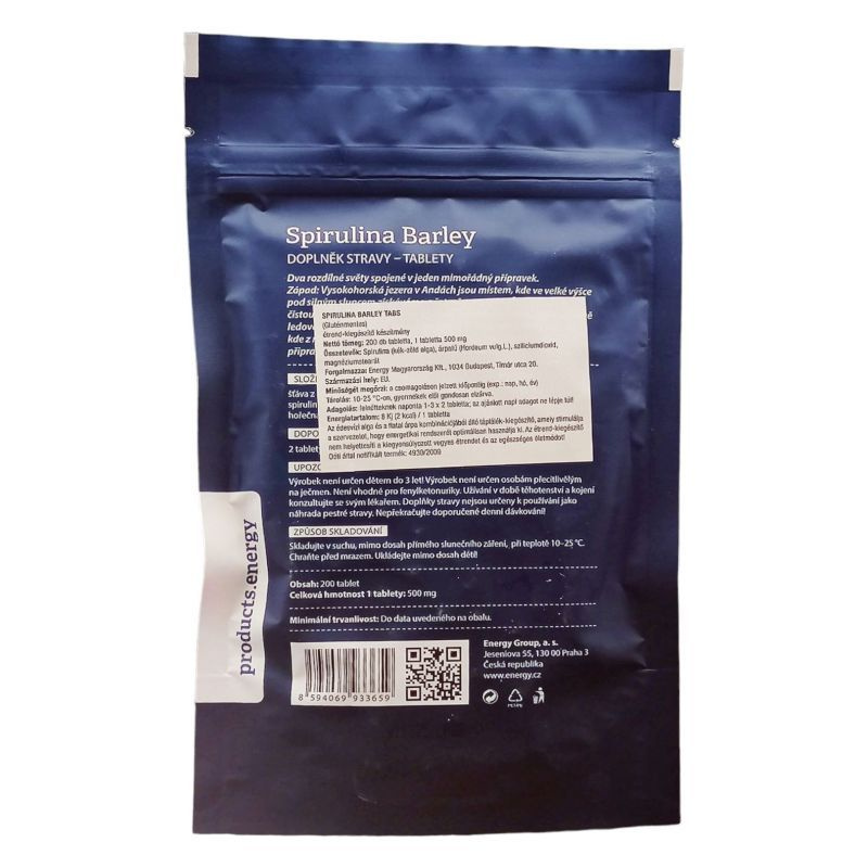 A készítmény besorolása: édesvízi alga és fiatal árpa-kivonat kombinációjából álló bioinformációs táplálék kiegészítő. Kiszerelése: 200 tabletta. Alkalmazása: a Spirulina Barley magas tápértékének köszönhetően az egészséges étrend mindennapi kiegészítője lehet. Arra stimulálja a szervezetet, hogy energetikai rendszerét optimális módon használja ki, így kiválóan használható fogyókúra során.