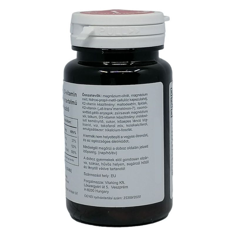 Kiváló minőségű komplex készítmény, ami nagy mennyiségben tartalmaz Magnézium-citrátot, D3 és K2 vitamint.