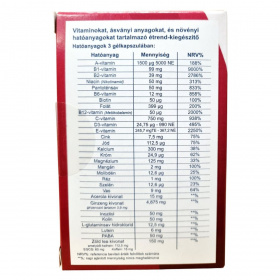 A multivitamin több vitamint és gyakran ásványi anyagot tartalmazó kombinált étrend-kiegészítő készítmény, amely a mikrotápanyag-bevitel kiegészítésére szolgál. Összetételétől függően tartalmazhat vízoldékony vitaminokat (például B-vitaminok, C-vitamin), zsírban oldódó vitaminokat (A-, D-, E-, K-vitamin), valamint nyomelemeket. Biokémiai szinten a vitaminok kofaktorként vesznek részt enzimreakciókban, antioxidáns védelemben és hormonális szabályozásban. A multivitamin alkalmazása olyan élethelyzetekben merülhet fel, amikor az étrend nem biztosít megfelelő mikrotápanyag-ellátottságot. Megfelelő adagolás mellett általában biztonságos, ugyanakkor a zsírban oldódó vitaminok túlzott bevitele kockázatot jelenthet. Egyéni egészségügyi állapot vagy gyógyszerszedés esetén javasolt szakemberrel konzultálni.
