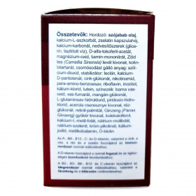 Szójaolaj, kalcium-L-aszkorbát, zselatin kapszulahéj, kalcium-karbonát, glicerin, tisztított víz, D-alfa-tokoferil-acetát, magnézium-oxid, tiamin-mononitrát, zöld tea (Camellia sinensis) levélkivonat, kolin-bitartrát, szilícium-dioxid, lecitin, kalcium-D-pantotenát, cink-glükonát, nikotinamid, vas-fumarát, réz-glükonát, retinil-palmitát, ginzeng (Panax ginseng) gyökérkivonat, kolekalciferol, kalcium-L-metil-folát, nátrium-molibdát, nátrium-szelenit, króm-pikolinát, kálium-jodid, metilkobalamin, D-biotin.
