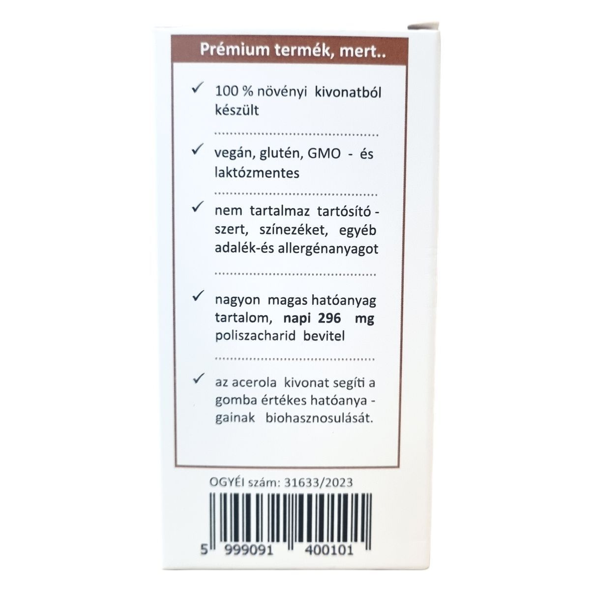 Hericium gombakivonat 370 mg kapszulánként, amelyből poliszacharid 148 mg;