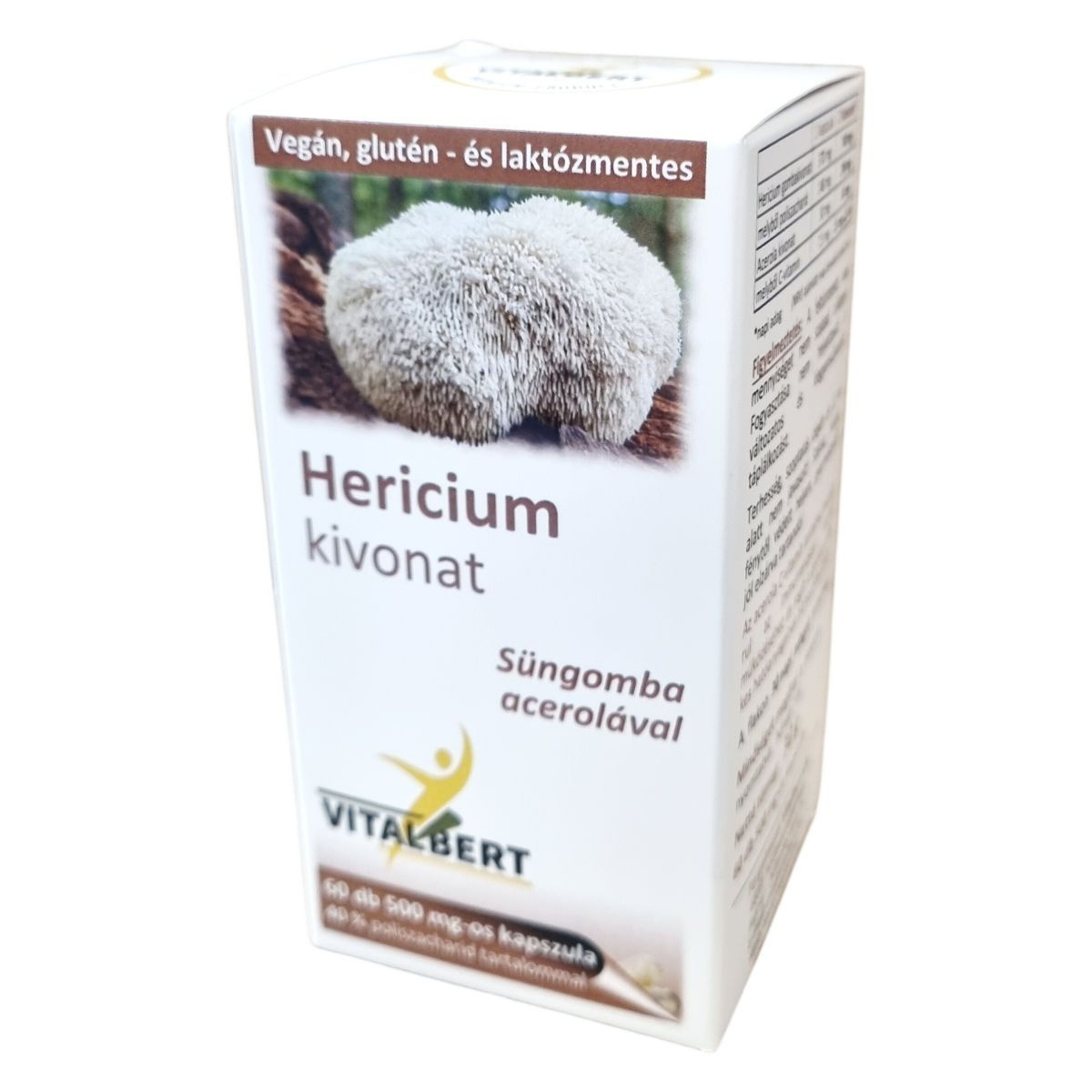 A Hericium erinaceus, ismertebb nevén süngomba, a Hericiaceae családba tartozó gombafaj, mely Észak-Amerikától Kelet-Ázsiáig honos. Kínában 4000 éve használják a hagyományos gyógyászatban kedvező hatásaiért, bár Európában még kevésbé ismert. A Vitalbert terméke a teljes termőtestből készült magas poliszacharid tartalmú (40%) kivonatot tartalmazza, amely vízalapú extrakcióval készül. A készítmény kapszulánként 370 mg süngomba és 30 mg acerola kivonatot tartalmaz, az acerola C-vitamin tartalma hozzájárulhat az immunrendszer normál működéséhez és segítheti a gomba hatóanyagainak biohasznosulását. A termék 60 db 500 mg-os kapszulát tartalmaz, amelyből kb. 30 napi adagot lehet bevenni. A készítmény nem tartalmaz GMO-t, tartósítószert, színezéket vagy más adalék- és allergén anyagokat, minőségét független laboratóriumi vizsgálatok igazolják.