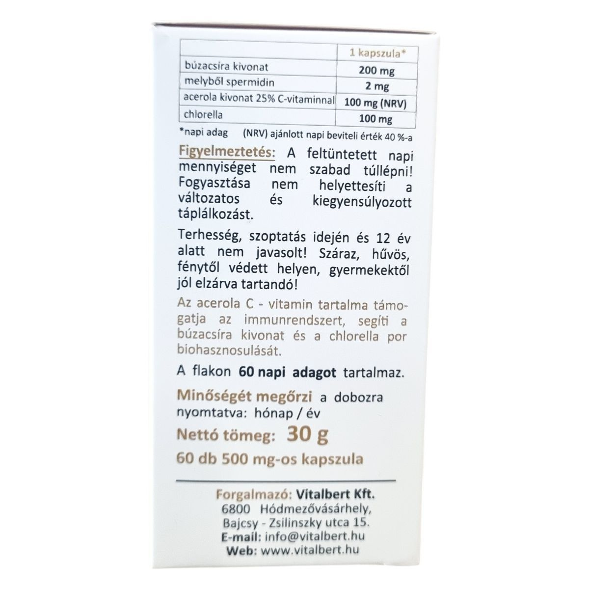 Vitalbert Spermidin plusz búzacsíra kivonat kapszula 60db