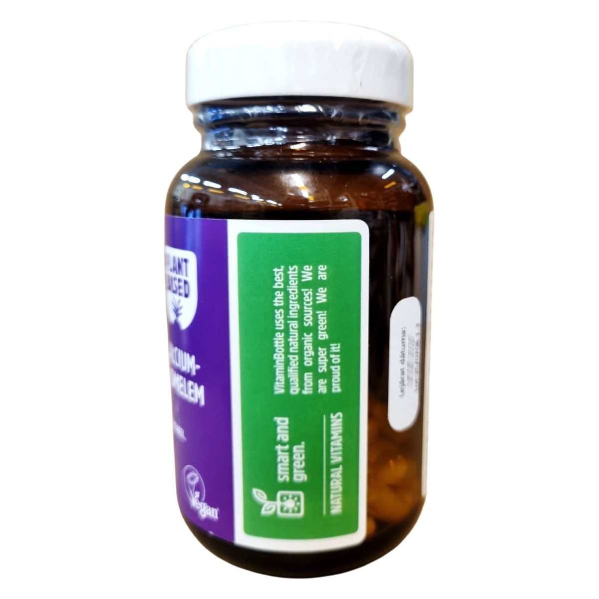 A VitaminBottle Kalcium–Magnézium–Cink–Szelén komplex növényi alapú étrend-kiegészítő, amely válogatott természetes összetevőkkel készül. A kalcium és magnézium hozzájárulhat az izmok, idegek és csontok normál működéséhez, míg a cink és a szelén szerepet játszhat az immunrendszer egészséges működésének fenntartásában. A termék antibakteriális és antivirális tulajdonságokkal bíró elemeket is tartalmazhat, így segítheti a szervezet védekezőképességét. 100%-ban vegán, kézzel készült (hand made) kapszula, amely nem tartalmaz mesterséges adalékanyagokat vagy színezékeket. Kiszerelése 30 darab kapszula, amelyek napi egyszeri adagolás mellett egy hónapra elegendőek lehetnek.