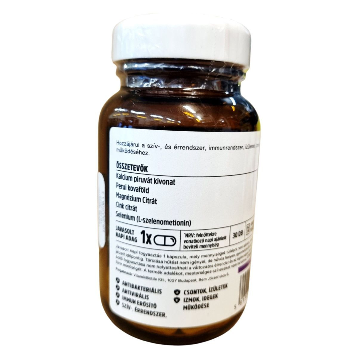 Kalcium piruvát kivonat, perui kovaföld, magnézium-citrát, cink-citrát, szelén (L-szelenometionin).