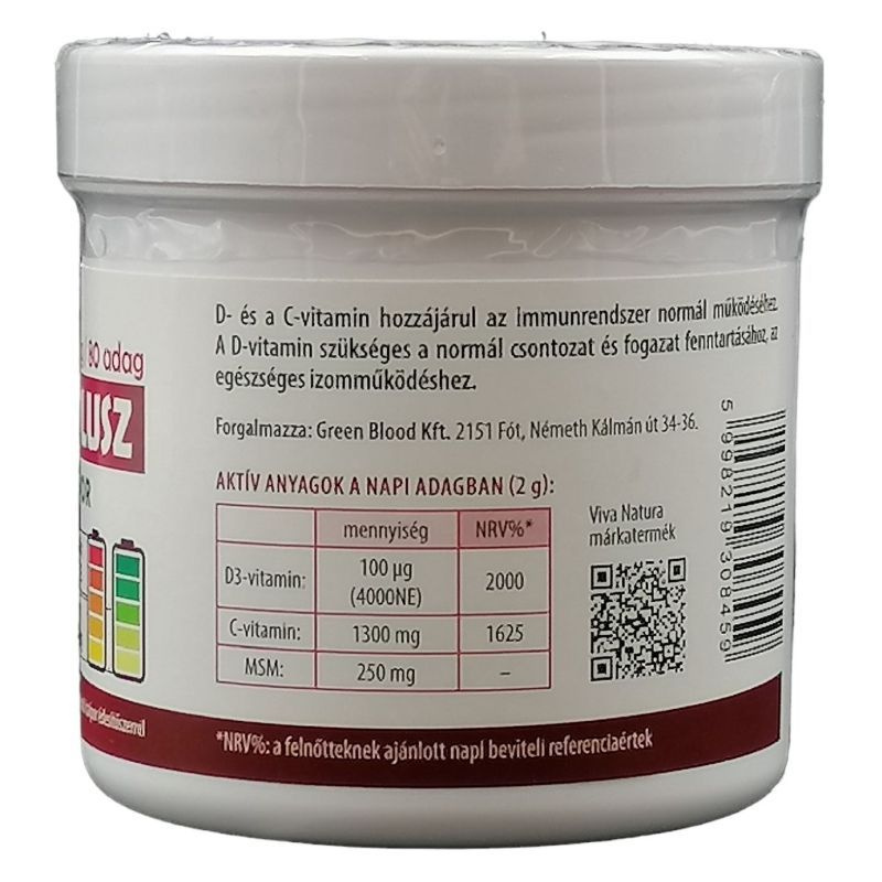 Összetevőivel (C+D-vitamin és MSM) támogatja az immunrendszert, a csontozatot, a fogakat és a normál izomműködést.