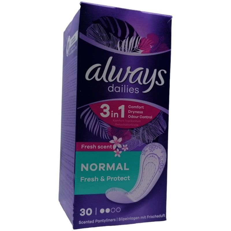 Őrizd meg a frisseségedet egész napon át az Always Dailies Fresh & Protect tisztasági betéttel, amely lélegzik és friss érzést ad 12 órán keresztül. A nadrágos bélés semlegesíti a szagokat, és optimálisan idomul a fehérneműnkhöz.