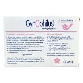 A GynOphilus® hüvelykapszula egyesíti a probiotikumot, Lacticaseibacillus rhamnosust, amely természetes módon jelen van a hüvelyben, valamint prebiotikumokat, amelyek tápláló elemet biztosítanak. Ez a kombináció háromféle védelmet biztosíthat a fertőző ágensekkel, például gombákkal és baktériumokkal szemben: fenntarthatja a normál hüvelyi pH-egyensúlyt tejsavtermeléssel, védőgátat képezhet, valamint biztosíthatja az egészséges hüvelyflóra növekedését elősegítő környezetet. A kapszula természetes módon regenerálhatja és fenntarthatja a hüvelyi flórát, enyhítheti a hüvelyi diszkomfort érzetet, például viszketést és irritációt, csökkentheti a kóros hüvelyi folyást, valamint minimalizálhatja a kiújulás kockázatát. Használata mellett a kapszula alkalmazható antibiotikumos és antimikotikumos kezelés során is. Felhelyezés előtt a kapszulát 10–15 másodpercig teljesen nedvesíteni kell vízzel.
