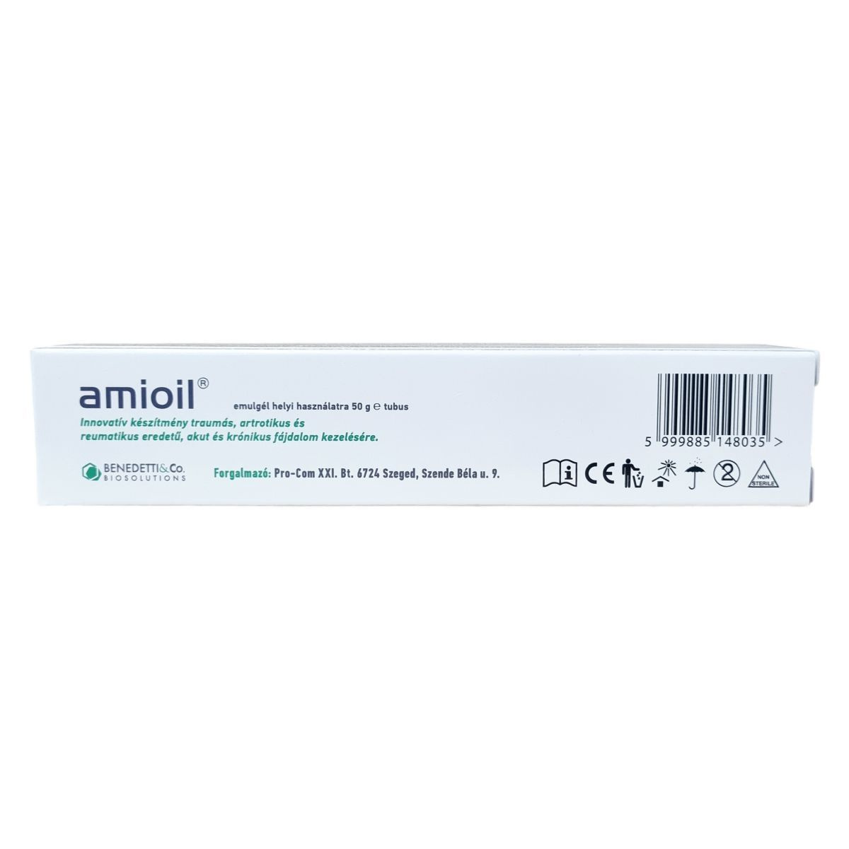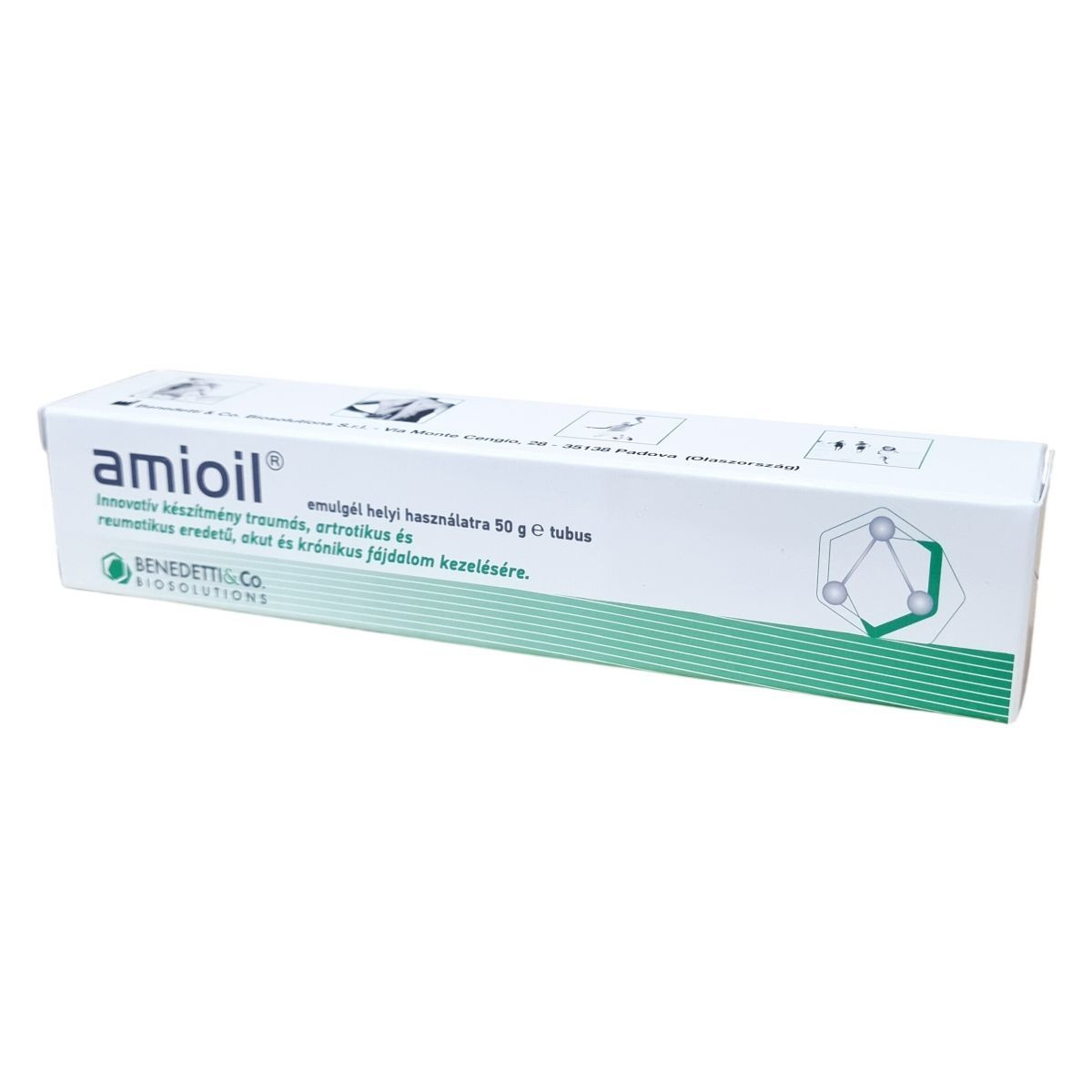 Az amioil® emulgél egy innovatív készítmény, mely helyi használatra készült a traumás, artrotikus és reumatikus eredetű fájdalmak kezelésére, legyenek azok akutak vagy krónikusak. Formulája olyan gyógynövényi és hatóanyagokat tartalmaz, melyek támogatják a gyulladáscsökkentést és a fájdalomcsillapítást. Az Ozolipoile® komponens olajsavban stabilizált ózont, alfa-liponsavat és E-vitamin acetátot foglal magában, miközben a hegyi árnika, ördögkarom és fekete ribizli kivonatokkal többirányú támogatást biztosít. Ezenkívül a bromelain, panthenol, mentol, glükózamin és hidrolizált glükózaminoglikánok segítik a bőr regenerálódását és a fájdalom enyhítését. A termék használható ultrahangos vagy elektroforézises kezelésekkel kombinálva is, tovább növelve hatékonyságát. A készítményt mindig zárt állapotban, a használati útmutató szerint kell tárolni, és gyermekektől elzárva kell tartani.