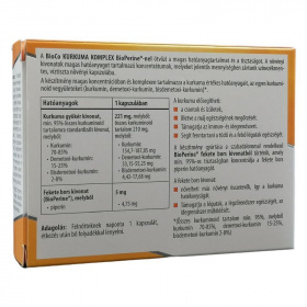 A BioCo KURKUMA KOMPLEX BioPerine-nel ötvözi a magas hatóanyagtartalmat és a tisztaságot. A növényi kivonatok magas hatóanyagot tartalmazó koncentrátumok, melyeket jelentős mennyiségben zártak a színezékmentes, víztiszta növényi kapszulákba.