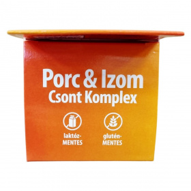 A BioCo Porc & Izom Csont Komplex egy magyar fejlesztésű és gyártású étrend-kiegészítő, amely glükozamin-szulfátot, kondroitin-szulfát-nátriumot, MSM-et, hidrolizált marhakollagén peptideket, vitaminokat és ásványi anyagokat tartalmaz filmtabletta formájában. A készítmény hozzájárulhat a normál csontozat és izomműködés fenntartásához, valamint a porcok egészségéhez. A kalcium a csontok fenntartásához szükséges, a C-vitamin a normál kollagénképződésen keresztül a porcok és a csontok egészségét támogathatja, míg a D-vitamin elősegítheti az ásványi anyagok felszívódását és az izomfunkció fenntartását. A réz a kötőszövetek normál állapotát támogathatja, a mangán pedig a kötőszövet-képződést és a csontok egészségét segítheti. A cink a csontok normál állapotához járulhat hozzá. Az MSM, egy természetes kéntartalmú vegyület, a szervezetben természetesen jelen van, így részt vehet az ízületi és izomszövetek támogatásában. A termék laktóz- és gluténmentes, és nyeléskönnyítő filmtabletta formában érhető el, amely különösen alkalmas lehet azoknak, akiknek fontos a csontrendszer és izomműködés egészségének megőrzése, például túlsúlyosaknak, sportolóknak, nehéz fizikai munkát végzőknek, illetve idősebb korúaknak. Fontos, hogy a termék nem ajánlott terhes vagy szoptató nők, gyerekek, véralvadásgátlót szedők számára, és allergiás reakció előfordulása esetén a fogyasztását mellőzni kell. A készítmény minőségét a doboz alján feltüntetett dátumig őrzi meg, és az étrend-kiegészítő nem helyettesíti a kiegyensúlyozott és változatos étrendet.