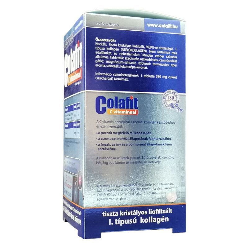 Táplálja és védi az ízületeket, valamint elősegíti az ízületek, ínszalagok, inak és a bőr egészségét. Az I. típusú kollagén alkotja a bőr, az inak és a csontok kollagén állományát. A Colafit a legkíméletesebb tartósítási módszerrel, liofilizálással (fagyasztott szárítás) készül, így nem tartalmaz vizet, és szivacsszerű állaga van. Ilyen módszerrel készül az űrhajósok, hegymászók és sportolók tápláléka is. Mindennemű adalékanyagtól és tartósítószertől mentes, semmilyen egyéb összetevőt, élelmiszeradalékot („E”-t) vagy nehézfémet nem tartalmaz. Nincs benne allergén, glutén sem cukor.