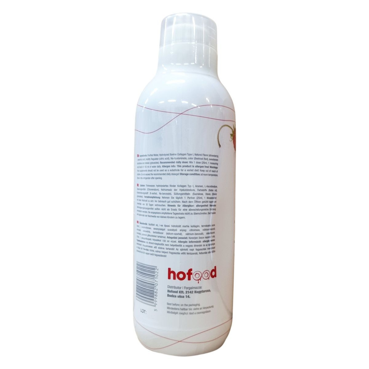 tisztított víz, I-es típusú hidrolizált marha kollagén, természetes aroma (eper), L-aszkorbinsav, savanyúságot szabályozó anyag: citromsav, nátrium-hialuronát, színezék (céklavörös), tartósítószer (kálium-szorbát, nátrium-benzoát), édesítőszerek (szukralóz, szteviol glikozidok)