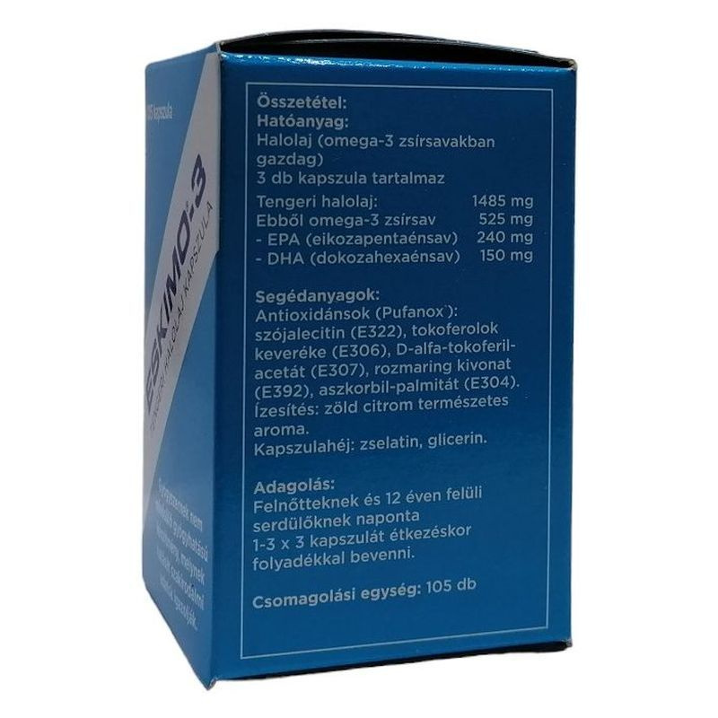 Eskimo-3 Omega-3 EPA és DHA tartalmú tengeri halolaj kapszula.