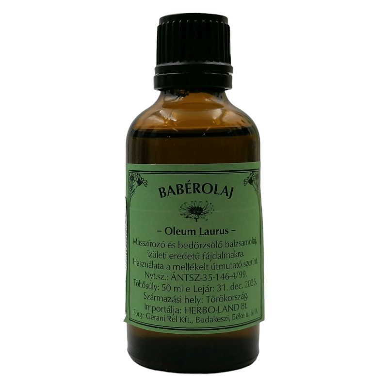 Babérolaj, amely gazdag tápanyagokban és bőrápoló hatású, segíti a bőr regenerálódását.