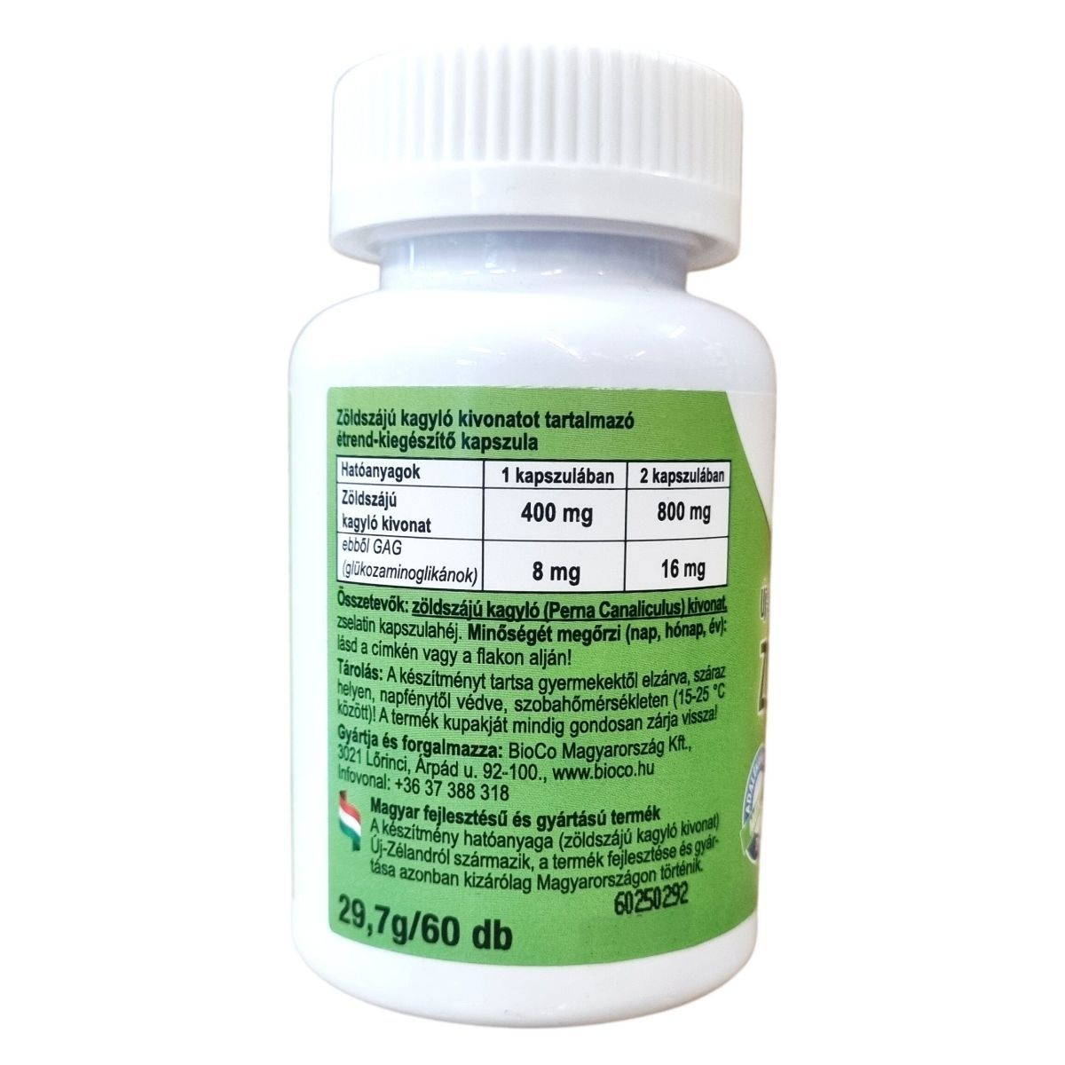 Zöldszájú kagyló kivonat 400 mg kapszulánként, 800 mg 2 kapszulánként,