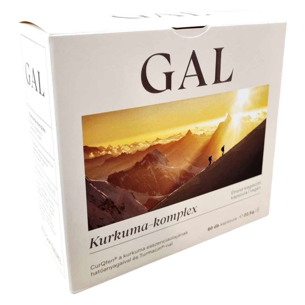A GAL Kurkuma-komplex egy természetes alapanyagokból készülő, minőségi étrend-kiegészítő, amely a kurkuma esszenciaolajának hatóanyagaival és a klinikailag is vizsgált Turmacin® kurkumakivonattal gazdagított. A CurQfen® által alkalmazott FenuMAT™ technológia egy természetes galaktomannán rostokra alapozott reverzibilis hidrokolloid-rendszer, amely lehetővé teszi, hogy a kurkuminoidok nagy része hatásos, szabad formában maradjon a szervezetben, így túlszárnyalva a korábbi hasonló megoldásokat. A termék vízoldékony kurkuminoidokat, turmeronokat és kurkuma-poliszacharidokat tartalmaz, ezzel segítve az összetevők jobb felszívódását. A kapszula vegán formában készül, cukor-, allergén-, glutén-, szója-, tejtermék-, laktóz- és GMO-mentes, a TÜV minőségbiztosítási előírások szerint gyártva. A csomagolás egy tasakot is tartalmaz, amely a nyitás után megfelelő zárással negyed évig megőrzi a termék minőségét.