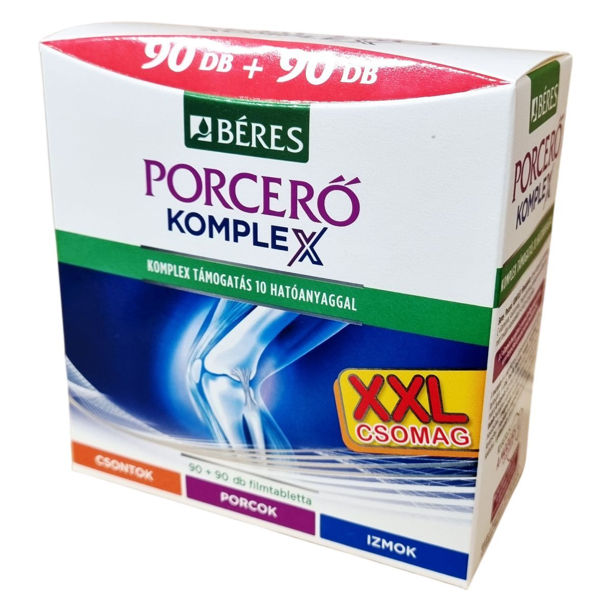 Béres Porcerő KOMPLEX filmtabletta étrend-kiegészítő készítmény C-vitaminnal, glükozamin-szulfáttal, kalciummal, magnéziummal, valamint további vitaminokkal és ásványi anyagokkal.