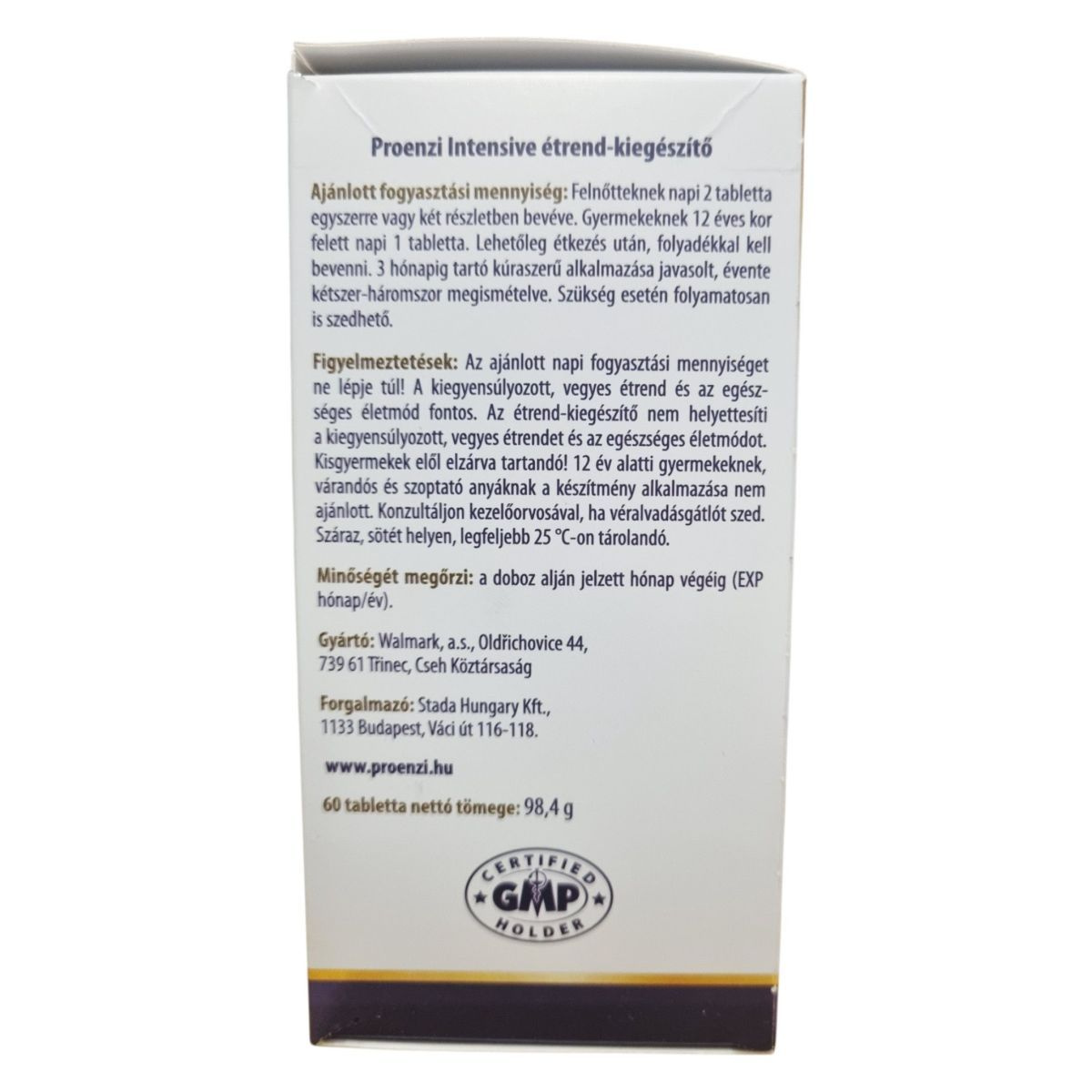 A Proenzi INTENSIVE egy komplex ízületi készítmény, amelyet az ízületek táplálására és a vázizomrendszer támogatására fejlesztettek ki. A termék glükózamin-szulfátot, kondroitin-szulfátot és II. típusú kollagént tartalmaz, amelyek hozzájárulhatnak az ízületi porcok normál állapotának fenntartásához. A C-vitamin segíthet a normál kollagénképződésben, míg a mangán a kötőszövet-képződésben játszhat szerepet. A termékben található BioPerine fokozhatja az összetevők felszívódását. A Salix alba és Curcuma longa kivonatok a népgyógyászatban és az ayurvédában is ismertek lehetnek az ízületek egészségének megőrzésében. A termék használata során fontos a kiegyensúlyozott étrend és az egészséges életmód fenntartása.