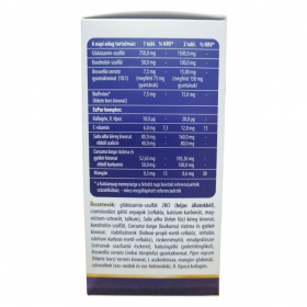 Glükózamin-szulfát 750,0 mg, Kondroitin-szulfát 50,0 mg, Boswellia serrata gyantakivonat 7,5 mg, BioPerine (fekete bors kivonat) 7,5 mg, Kollagén, II. típus 10,0 µg, C-vitamin 6,0 mg, Salix alba kéreg kivonat 40,0 mg, ebből szalicin 4,0 mg, Curcuma longa rizóma és gyökér kivonat 52,63 mg, ebből kurkumin 50,0 mg, Mangán 0,3 mg