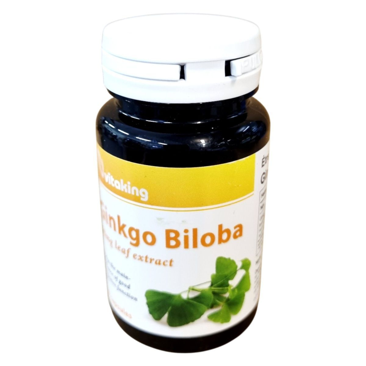 A Vitaking Ginkgo Biloba étrend-kiegészítő 90 kapszulás kiszerelésben kapható, és segíthet a kognitív funkciók fenntartásában. A termék 60 mg Ginkgo Biloba levél kivonatot tartalmaz kapszulánként, amely flavon glikozidokat és terpén laktónokat is tartalmazhat. A napi ajánlott mennyiség 1 kapszula étkezés közben, és fontos, hogy a napi ajánlott mennyiséget ne lépjük túl. A termék nem helyettesíti a vegyes étrendet és az egészséges életmódot. Tárolása száraz, hűvös helyen, gyermekektől elzárva javasolt. A termék fogyasztása nem ajánlott várandós és szoptató nőknek, gyermekeknek, valamint véralvadást gátló gyógyszert szedőknek és cukorbetegeknek orvosi konzultáció nélkül.