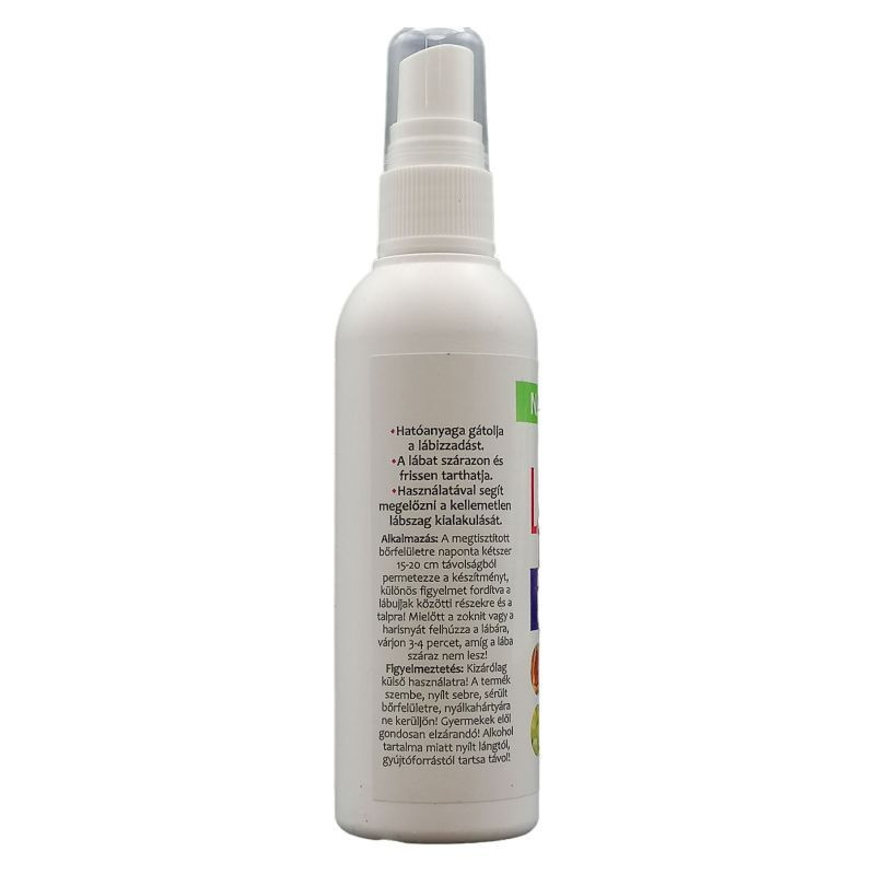 A lábat szárazon és frissen tartja. Használatával megelőzhető a kellemetlen lábszag kialakulása. A zoknin és a harisnyán nem hagy foltot. Alkalmazás: A megtisztított bőrfelületre naponta kétszer 15-20 cm távolságból permetezze a készítményt, különös figyelmet fordítva a lábujjak közötti részekre és a talpra! Mielőtt a zoknit vagy a harisnyát felhúzza a lábára, várjon 3-4 percet, amíg a lába száraz nem lesz!