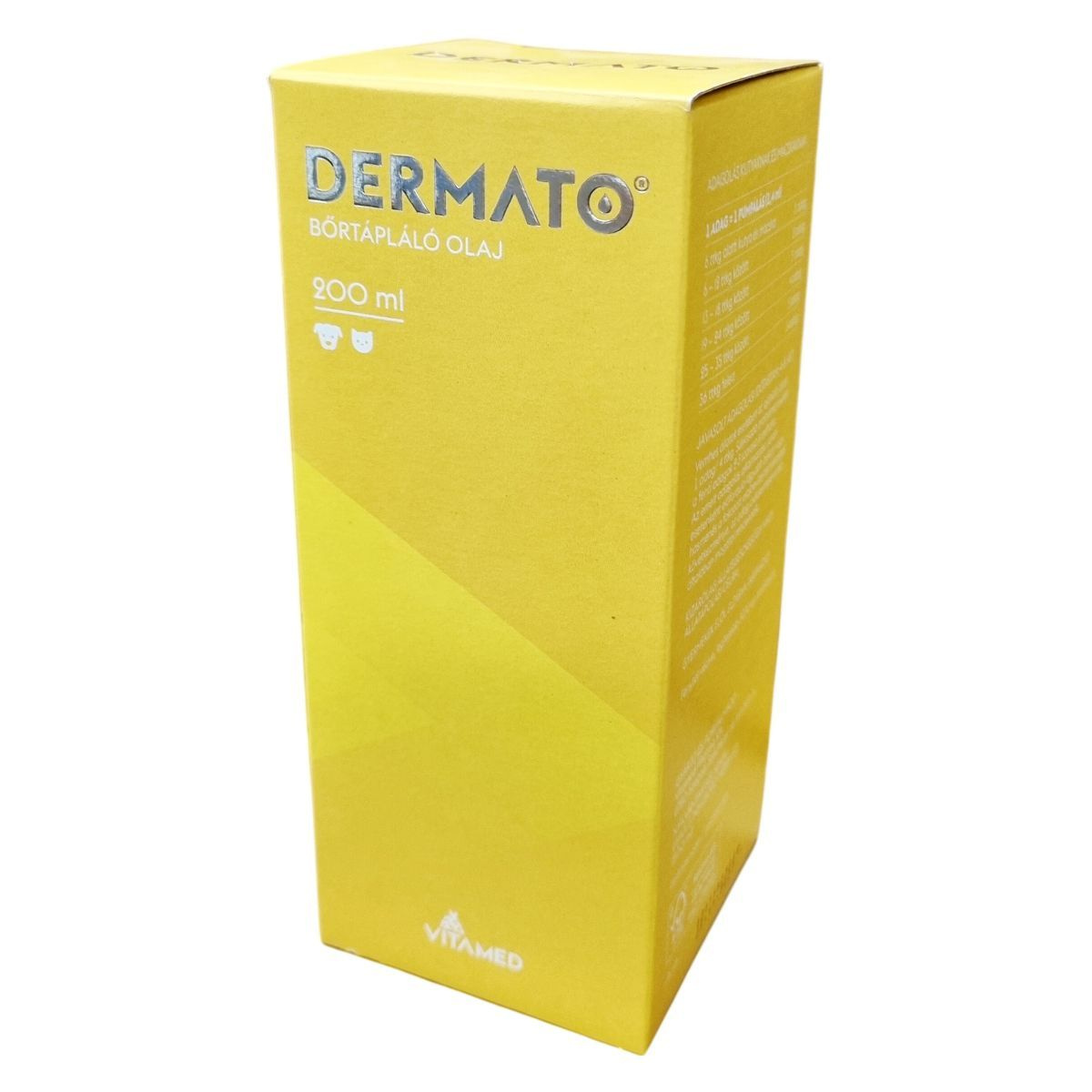 A Dermato bőrtápláló olaj egy belsőleges készítmény kutyák és macskák bőrének, szőrének és karmaik egészségének fenntartására, létfontosságú zsírsavakat és antioxidánsokat tartalmazó komplex ápoló olaj.
