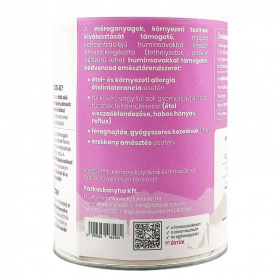A méreganyagok, környezeti toxinok kiválasztását támogató, magas koncentrációjú huminsavakból készült étrend-kiegészítő. Élethelyzetek, amikor célszerű lehet huminsavakkal támogatni kedvenced emésztőrendszerét: étel- és környezeti allergia, ételintolerancia esetén, túl kevés, vagy túl sok gyomorsavra utaló tünetek felmerülésekor (étel visszaöklendezése, habos hányás, reflux), féreghajtás, gyógyszeres kezelések után, érzékeny emésztés esetén.Ajánlott napi adag: 1,5g/5kg. 1 mérőkanál kb. 5g.