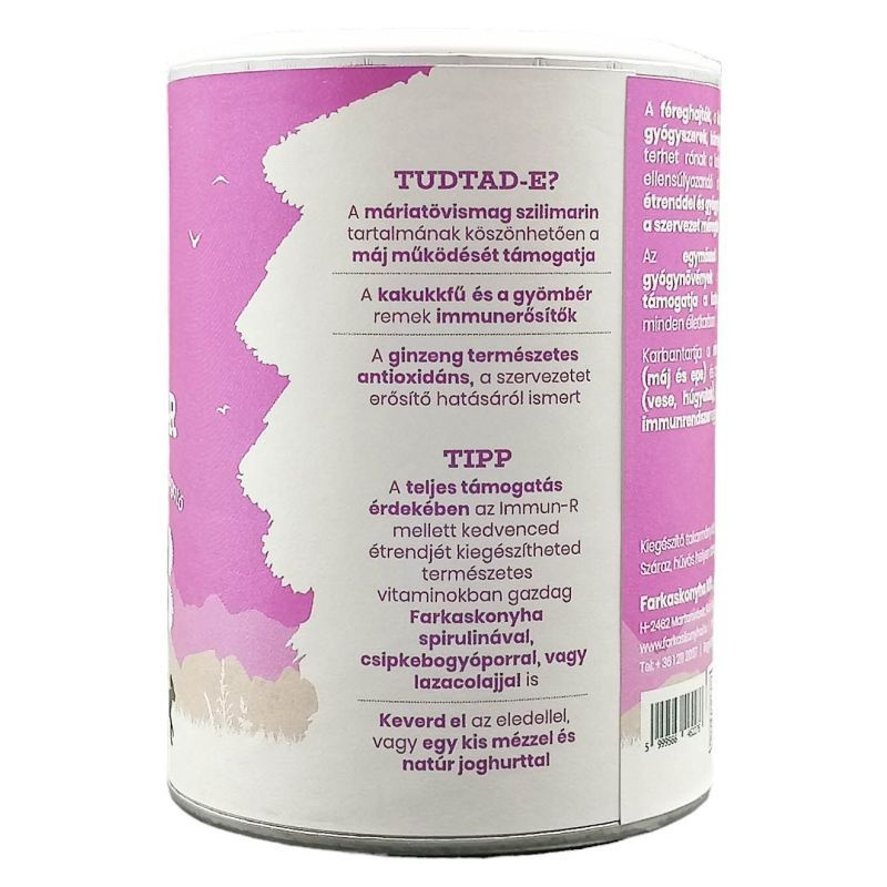 Tipp: A teljes támogatás érdekében az Immun-R mellett kedvenced étrendjét kiegészítheted természetes vitaminokban gazdag Farkaskonyha spirulinával, csipkebogyóporral, vagy lazacolajjal is. Keverd el az eledellel, vagy egy kis mézzel és natúr joghurttal.