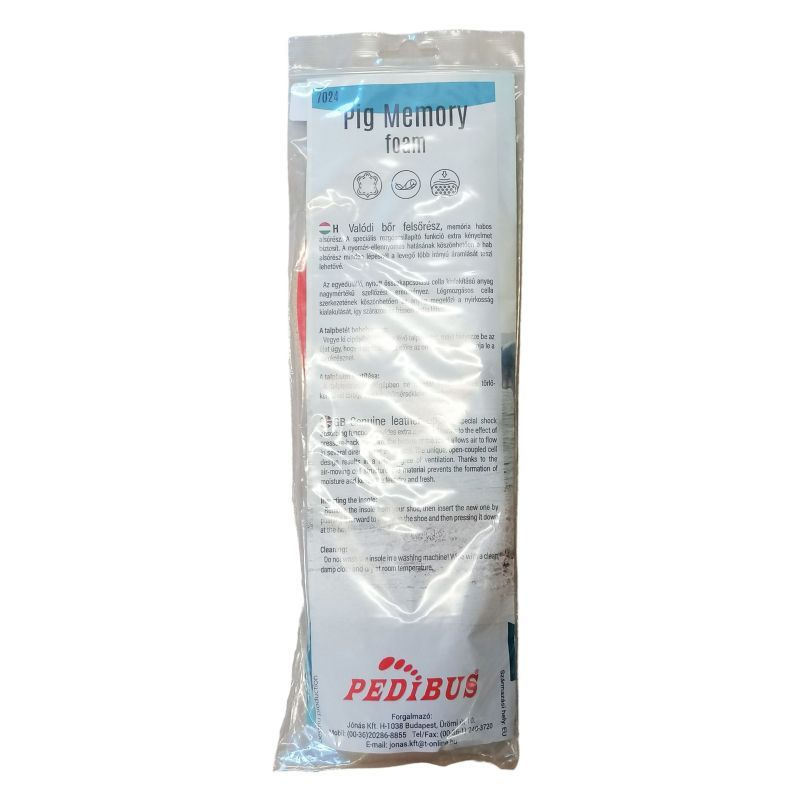 Memóriahabos talpbetét, rezgéscsillapító funkció, sertésbőr felsőrész. Hab alsórész, szárazon és frissen tartja a lábat, harántemelős, gerinckímélő sarokágy.